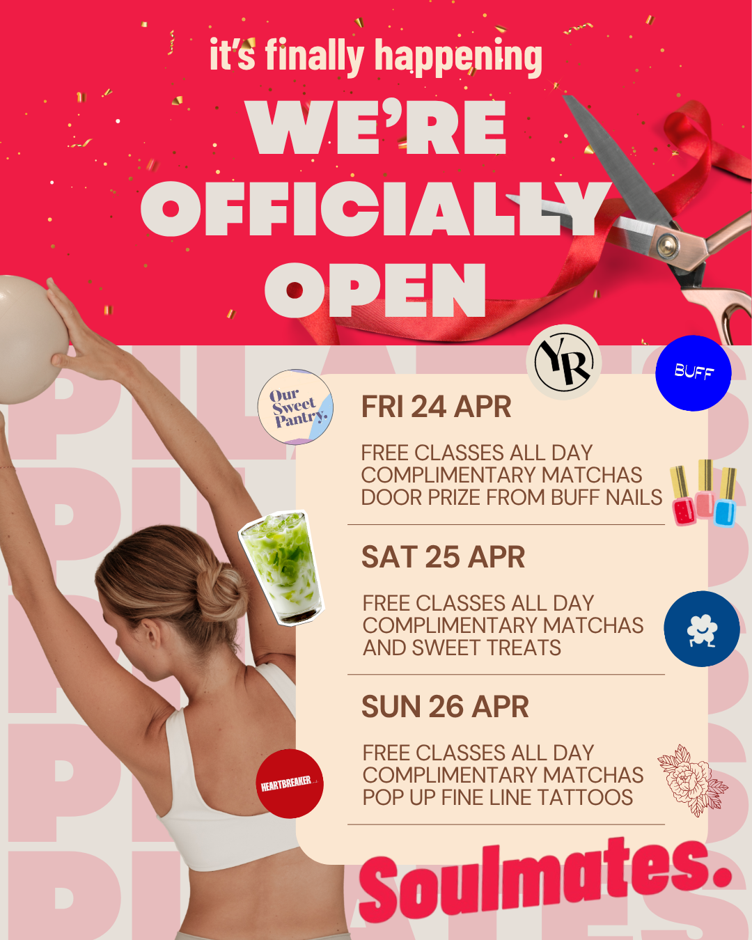 Whether you’re stepping onto the reformer for the first time or you’ve been with us from the beginning, this is your invitation to experience Soulmates in its newest home.